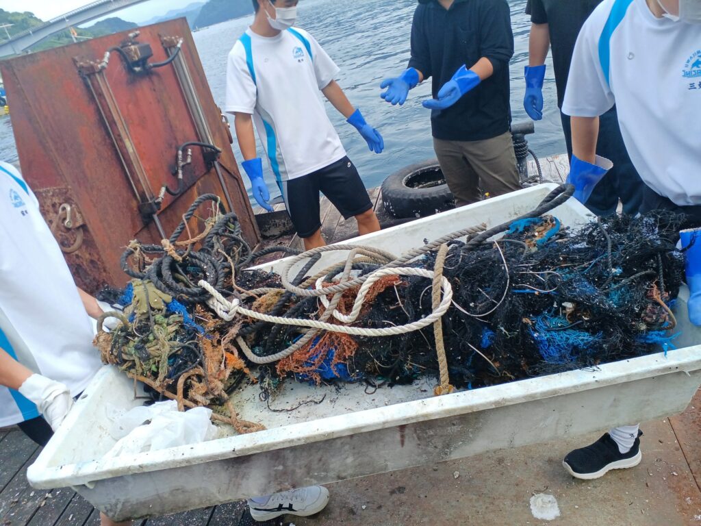 海洋ゴミへの取組み 2024/06/14 by 事務局2号 宇和海でも海洋ゴミ問題は深刻になっており、養殖筏に入り込んだプラスチックゴミを餌と間違えて魚が食べ窒息する、ゴミが網に絡まるなど海洋ゴミの影響が顕著になりつつあります。青年協としてもこの問題の解決に向けて積極的に取組んでいます。 17161815398451716181505134-2-11717994203069-1 養殖筏内の海洋ゴミ 地域の方々と協力して海岸清掃、海洋ゴミの有効な利用方法の模索 FacebookXHatenaPocket